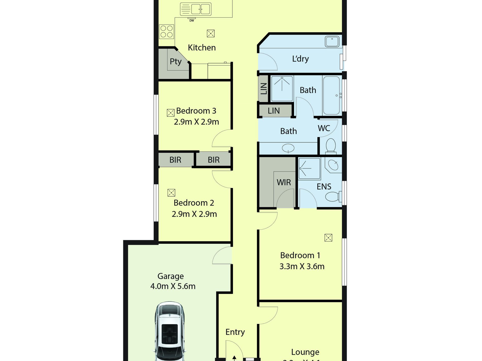 🔷Walk-through laundry with under-bench appliance space.